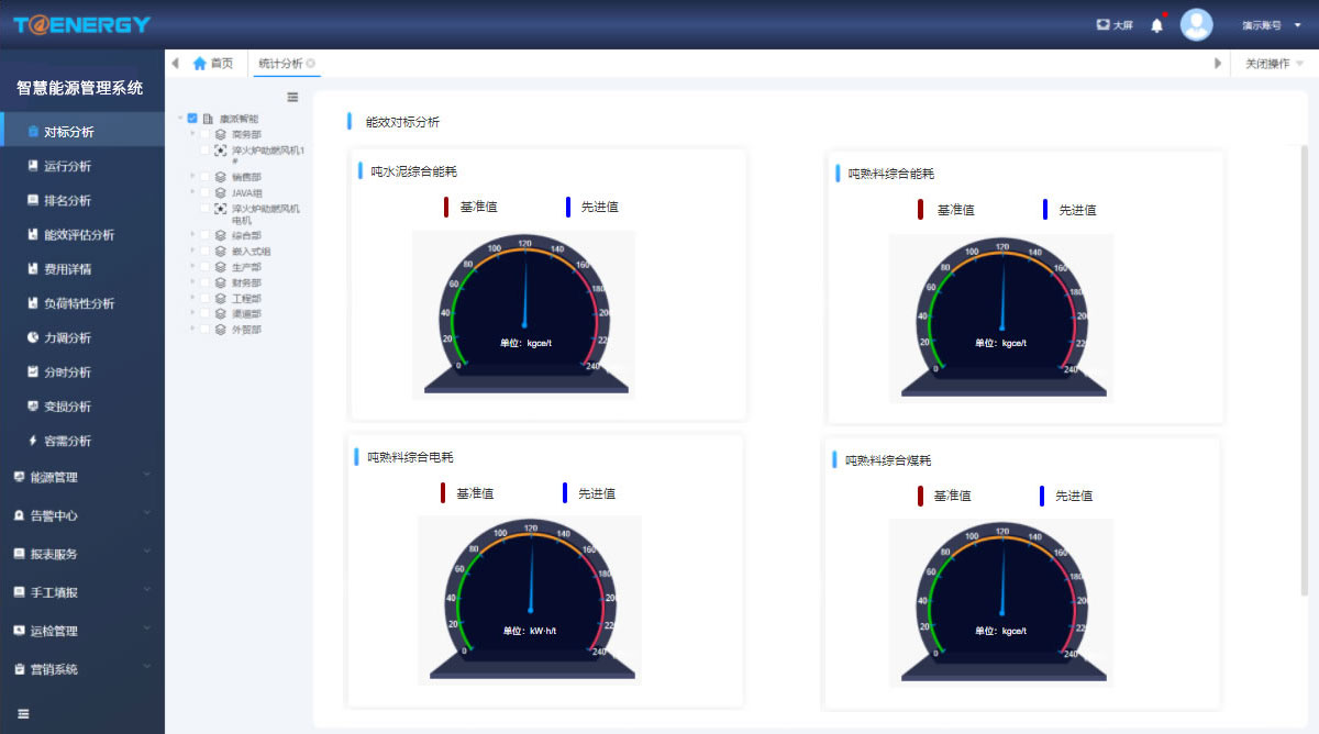 3.實(shí)現產(chǎn)品能效對標,含噸熟料綜合能耗、噸熟料電耗、噸水泥電耗等。
